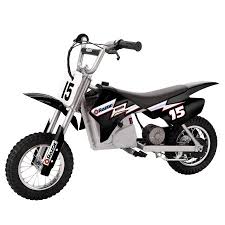 Designed for children ages 12 and older. Scaled down, battery-powered electric moto-cross dirt bike for off-road riding Super quiet, single speed, chain driven motor with a twist grip throttle contro Large knobby tires; hand operated rear brake Speeds up to 12 miles per hour Additional features: dual suspension, adjustable riser handlebars, and valve stem that lights up 0 to 12 Months Razor MX400 Dirt Rocket Electric Motorcycle Bike - Black If you would like to share feedback with us about pricing, delivery or other customer service issues, please contact customer service directly. Q&A tips and guidelines When writing your question or answer, please follow these guidelines: Do: Make sure your question is directly related to the product Do: Be specific and provide as many details as possible Do: Include the model number (if applicable) Do: Write your question in English Do Not: Include personal information (such as your full name)