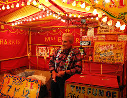 For other uses, see Carny (disambiguation) and Carney. For the 2010 film, see Carnies (film). A carny and his coconut shy in 2005. Carny, also spelled carnie, is an informal term used in North America for a traveling carnival employee, and the language they use, particularly when the employee runs a game ("joint"), food stand ("grab" or "popper"), or ride at a carnival. The term "showie" is used synonymously in Australia. Carny is thought to have become popularized around 1931 in North America, when it was first colloquially used to describe one who works at a carnival.[1] The word carnival, originally meaning a "time of merrymaking before Lent," came into use circa 1549. The carny vocabulary is traditionally part of carnival cant, a secret language. It is an ever-changing form of communication, in large part designed to be impossible to understand by an outsider.[2] As words are assimilated into the culture at large, they lose their function and are replaced by more obscure or insular terms.